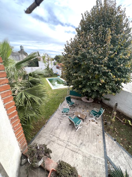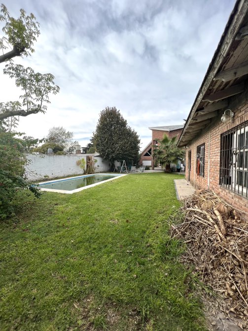 Cochera techada y pasante para varios autos, jardin con pileta de material y quincho de 5 x