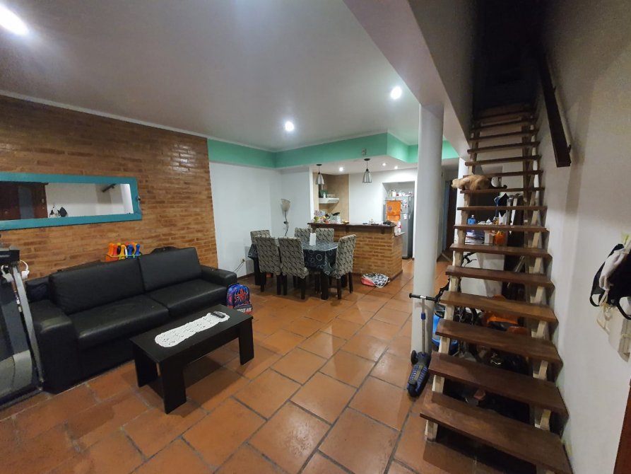 Casa tipo Duplex, desarrollada en 2 plantas, con 2 dormitorios, uno grande en planta alta con baño y otro en planta baja, living comedor, cocina, 2 baños y patio chico con lavadero.