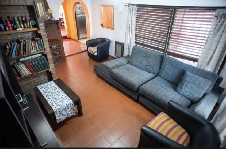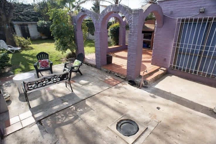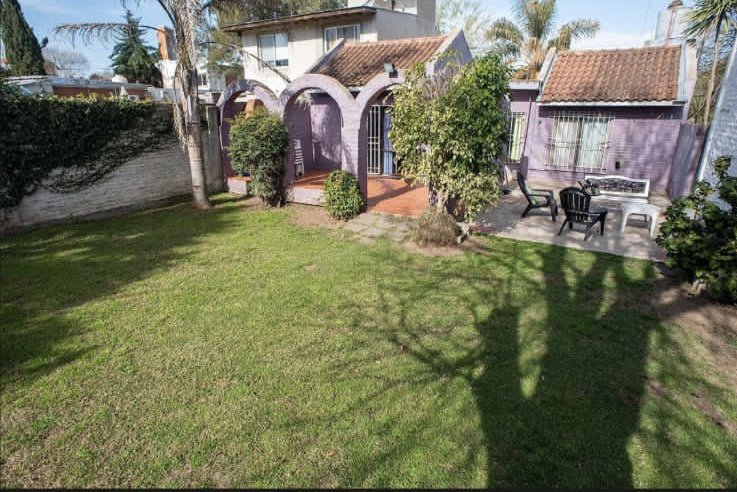 Casa construida sobre Lote de 10 mts de frente x 42 mts de fondo, con 2 Dormitorios, un cuarto de estudio, living, cocina y comedor con salida al jardin, Baño, Cochera cubierta para dos autos, Patio con parrilla y Jardin al fondo. techos de losa y tejas. Ubicada a 6 cuadras de la estacion de trenes de Ranelagh.