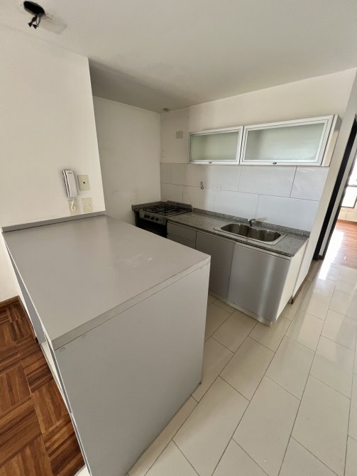 Departamento ubicado en el 4to piso (frente y contrafrente) de 1 dormitorio con Placard embutido, baño, cocina amueblada con barra divisoria, living comedor y pequeño balcón. Luminoso y con buena ventilación. En muy buen estado y en pleno centro de Berazategui