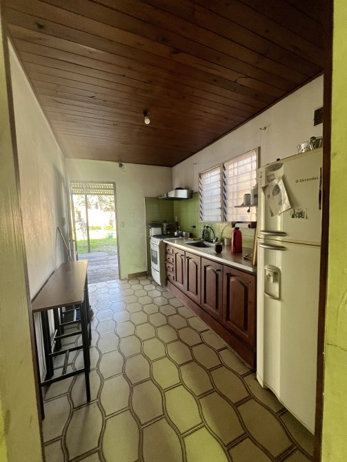 Casa prefabricada sobre lote de 355 M2. Ubicada a 1 cuadra de Av. Vergara y a 2 cuadras de Av. Antártida Argentina. Cuenta con 2 dormitorios, baño completo remodelado a nuevo, cocina, living comedor, patio techado, cochera cubierta, galpón y jardín. Todos los servicios.
